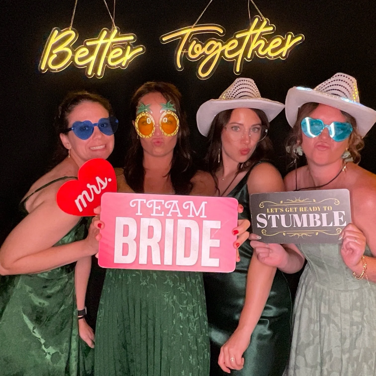 Honey, we have more props than a party could use! Including cowboy hats, neon glasses, and all sorts of signs!